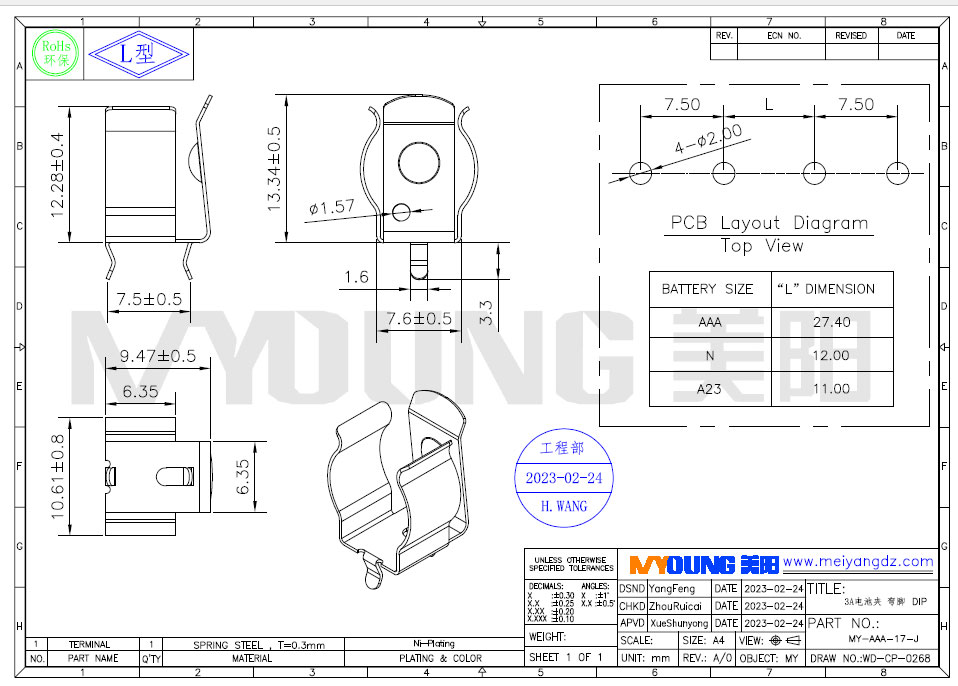 MYOONG is a high-tech enterprise focusing on R&D, production, sales and service of battery peripheral accessories. Main products: battery holders, battery buckles, battery boxes, battery shrapnel and so on. The categories are complete, the samples are varied, and free customization is supported.
