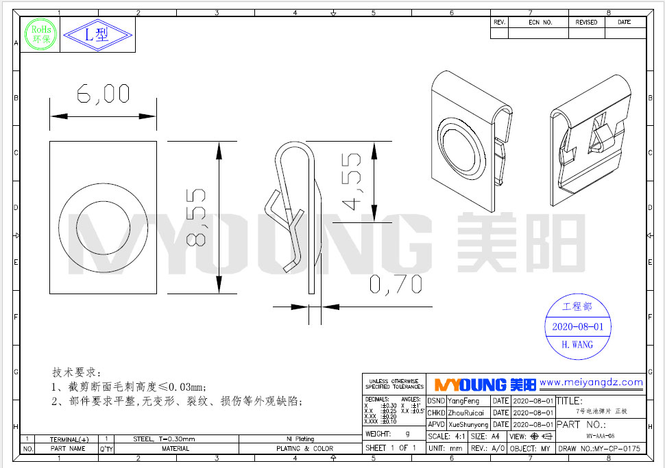 Location:Home » Product Center » Battery shrapnel » No.7 battery shrapnel positive electrode (MY-AAA-08)